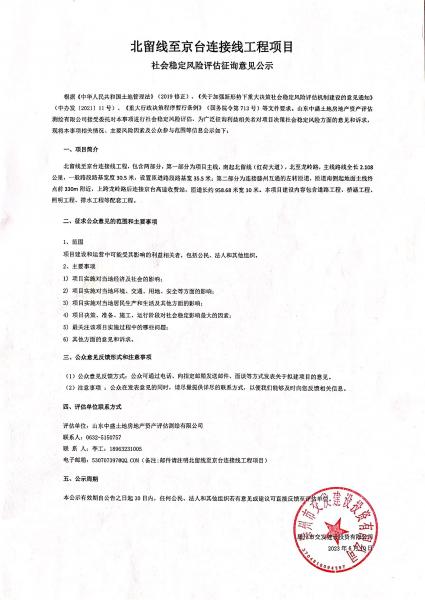 北留線至京臺(tái)連接線工程項(xiàng)目社會(huì)穩(wěn)定風(fēng)險(xiǎn)評(píng)估征詢意見公示
