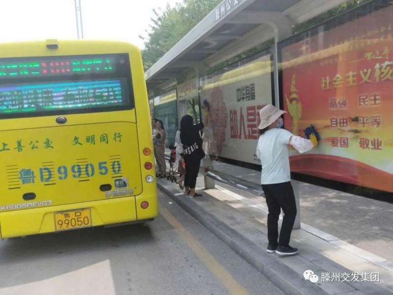 在城區(qū)各公交站臺,集團(tuán)干部職工手持抹布、刷子等工具,認(rèn)真擦拭站牌和候車座椅,清理站臺周邊環(huán)境衛(wèi)生,引導(dǎo)公交車輛進(jìn)出站、疏導(dǎo)乘客文明有序乘車,同時向乘客普及文明乘車知識,積極營造文明有序的公交出行環(huán)境。